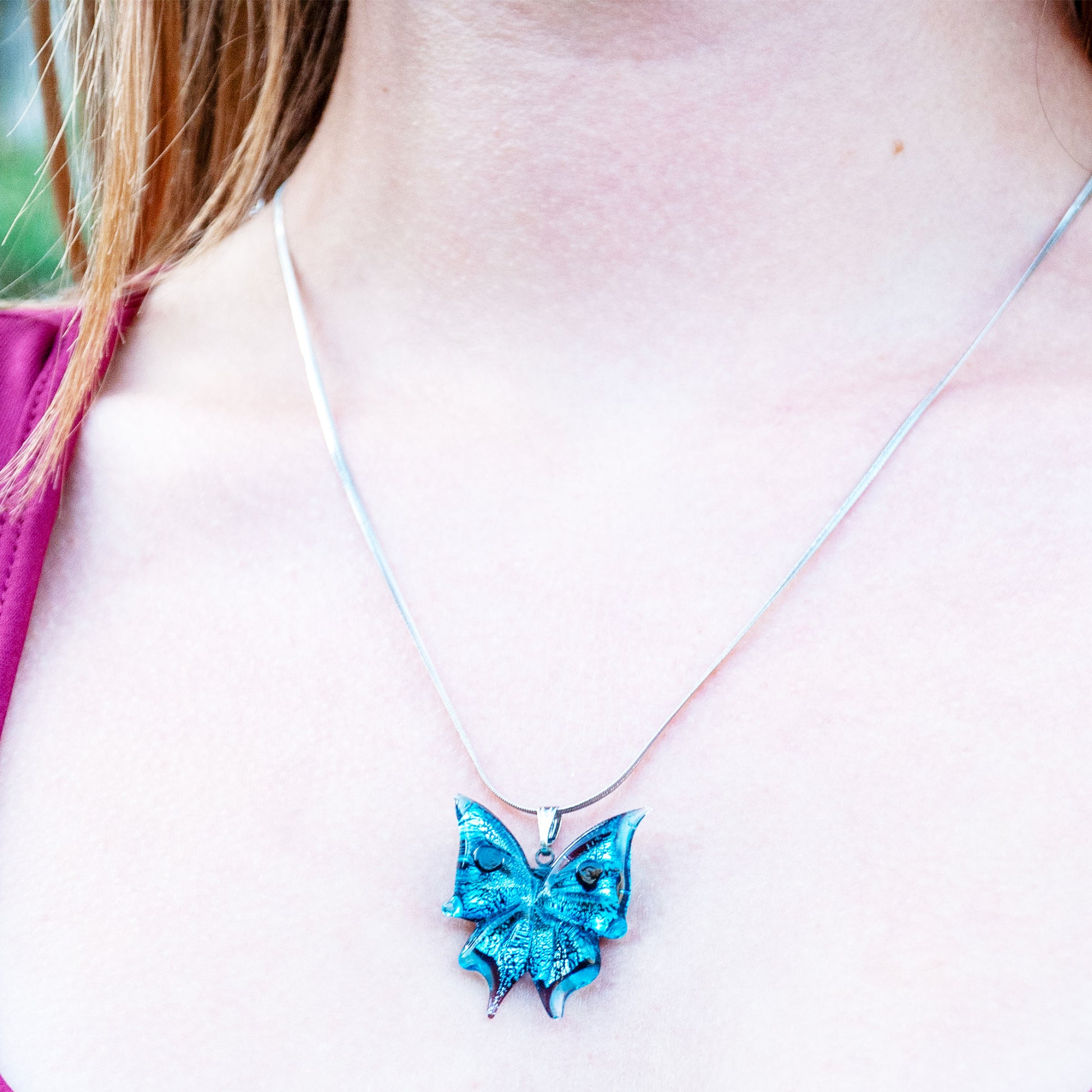 Murano glass. Silver and gold. Stainless hypoallergenic steel chain.